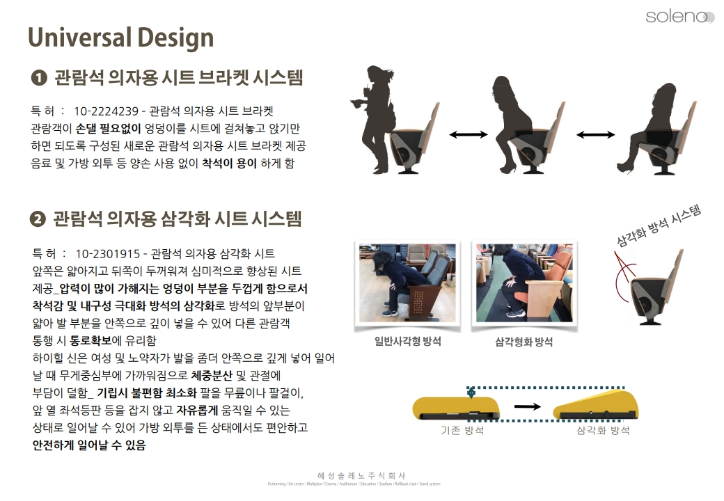 관람객이 손댈 필요없이 엉덩이를 시트에 걸쳐놓고 앉기만 하면 되도록 구성된 새로운 관람석 의자용 시트 브라켓 제공